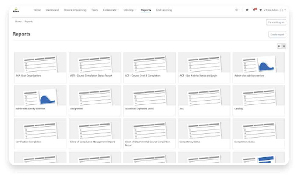 - Monitorear e informar el progreso de la capacitación en tiempo real en todos los departamentos y equipos, y compartir actualizaciones con las partes interesadas mediante sólidas herramientas de informes.