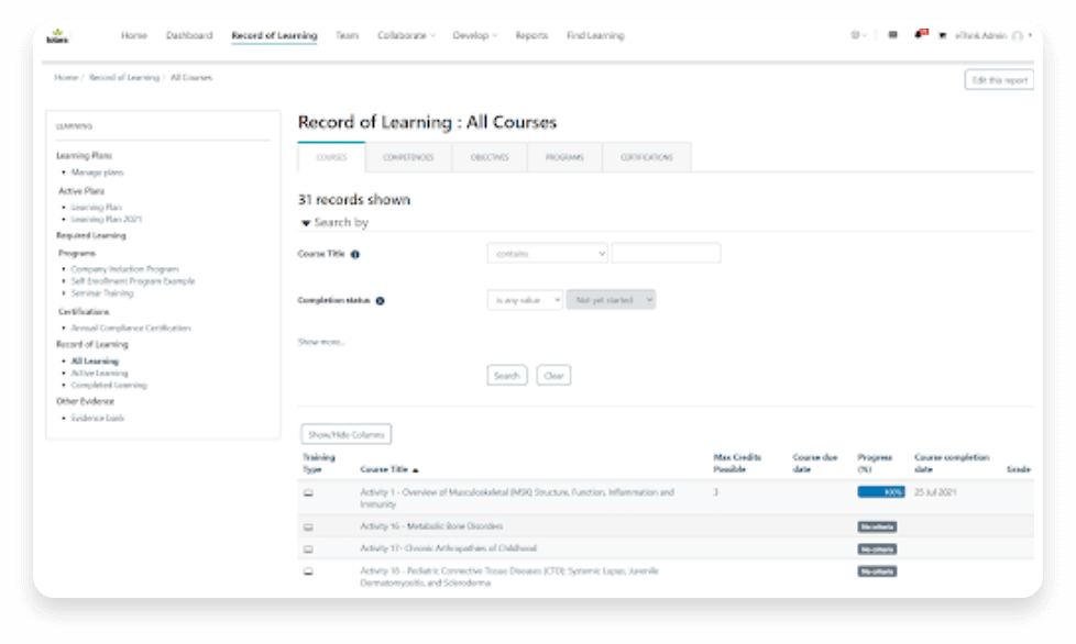 Con Open LMS WORK, tus administradores de LMS pueden planificar fácilmente los trayectos de aprendizaje y monitorear el progreso en cumplimiento. Desarrolla el contenido de capacitación que mejor se adapte a las necesidades de tu fuerza laboral utilizando nuestras herramientas de evaluación nativas, aprovecha la creación de contenido interactivo con H5P o carga tus propias bibliotecas de contenido compatibles con SCORM.